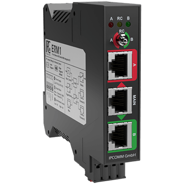 3x RJ45 Ethernet interfaces (A <- MAIN -> B)