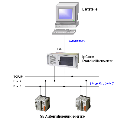 Harris-5000/6000 Protokoll kommuniziert. Ende 1999 wurde der Protokollkonverter an das gedoppelte